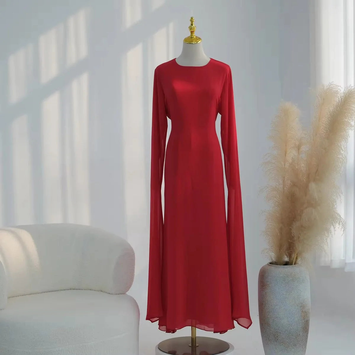 Muslim Waist-clinching Chiffon Abaya Dress #251151